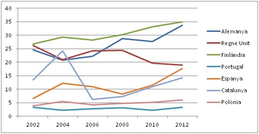 [1] Les dades corresponen a l’Enquesta Social Europea (de la primera a la sisena onada). Per a fer-ho més visual, es mostra només una selecció de països. Tot i alguna excepció, la tendència que s’hi observa és majoritària.