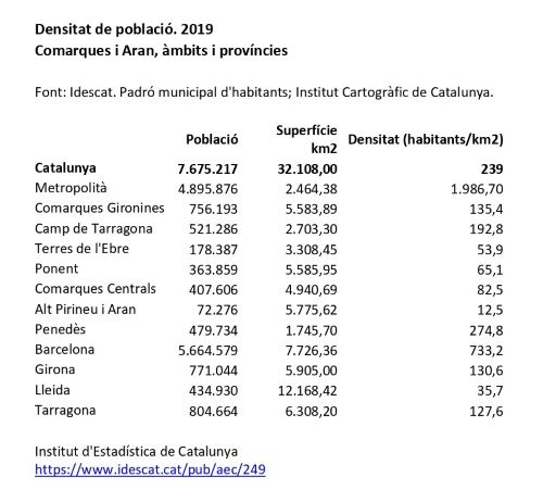 Catalunya és veritablement un país petit i al mateix temps complex, poc uniforme i caracteritzat per ser demogràficament com un capgròs ja que més de la meitat de la població es concentra a la ciutat de Barcelona i la seva àrea metropolitana. De fet, els 36 municipis de l’actual Àrea Metropolitana de Barcelona administrativa (en endavant AMB) suposaven l’any 2012 el 42.8% de la població catalana i això, sense comptar amb el Maresme i la resta de municipis dels dos Vallesos, amb els que superarien aquest 50%.
