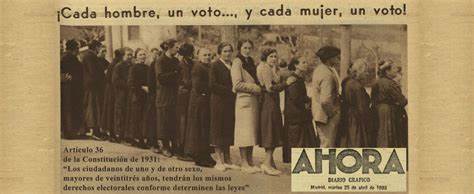 No va ser fins ben entrat al segle XX que es va posar a l’agenda política, pública i mediàtica la necessitat de què la dona obtingués el dret a vot, concretament la Constitució del 1931 va ser el primer text legal espanyol que ho va preveure (tot i que finalment no va ser fins al 1933 que es va implementar).
